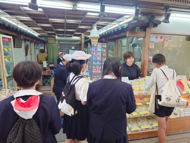 水族館の後は、お待ちかねのお土産タイムです。買食いも、食べ歩きとかをしなければOKなので、子どもたちは、揚げもみじなどを食べながら、買い物を楽しみました。
