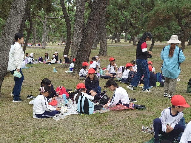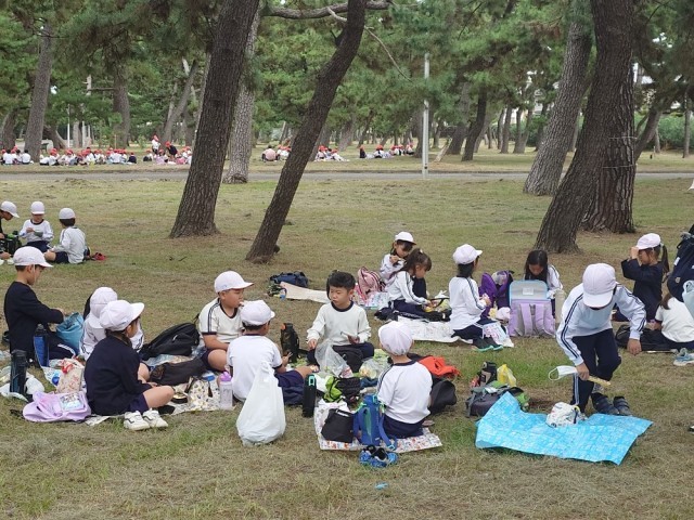 始めは北側の遊具で遊び、その後、南側の遊具に移動、遊んだり、秋見つけをしました。もちろん美味しくお弁当やおやつをいただきました。