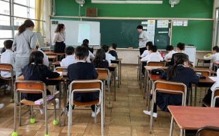 3年生は外国語活動で、英語で自己紹介をする練習をしていました。