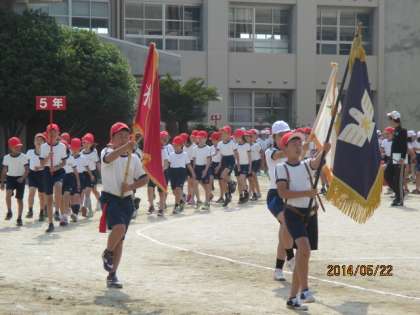 5月22日(木)に運動会全体練習をしました。1年生〜6年生まで行進の練習に始まり、選手宣誓やラジオ体操、今年から行われる全校児童で行う大玉送りをしました。皆一生懸命取り組みました。
