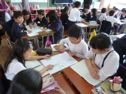 4月23日(木)に授業参観、学級懇談会、PTA総会がありました。たくさんの保護者の方に来ていただき、子どもたちは、はりきって学習に取り組みました。学級では担任から今年の学級経営について話があり、PTA総会を図書室で行いました。