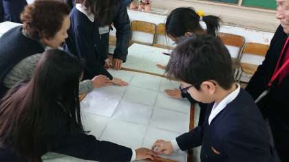 1月30日3年生は、社会の学習で、昔のくらしについて長生会の皆さんに教えていただきました。まず、1時間目ははたきづくり、洗濯板での洗濯、障子張り、かんぽっくりづくりの4コースに分かれて、体験しました。昔懐かしい道具や作業も、子ども達にはとても新鮮だったようで、戻ってきた後、他のコースのお友達にしっかり伝えていたようです。