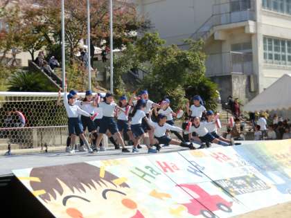 日曜日に三中フェスタが開催されました。木島小学校からは、児童の作品展示、五年生の有志によるエイサー(舞台出演)、PTAによる模擬店でのポテトとチキンナゲットの販売で参加しました。五年生の有志はグラウンドの大きな舞台で元気に演技していました