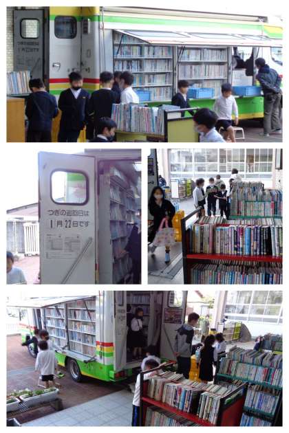 今日はひまわり号の日でした。子どもたちは今日もたくさん本を借りていました。