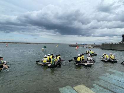 グループで協力して、海へ漕ぎ出します。