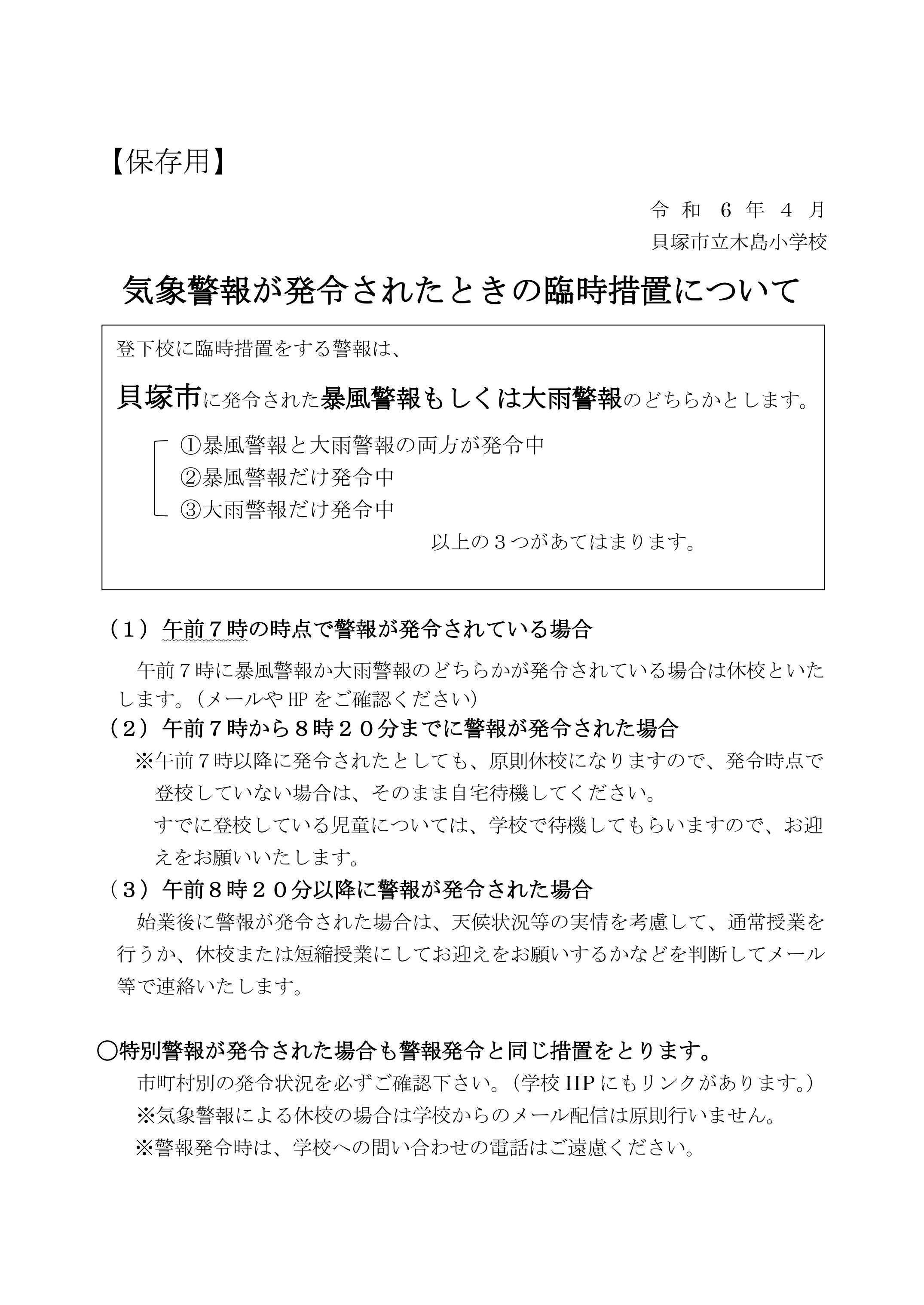警報発令時の臨時措置について