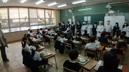 6年生が、エプロンを着るお手伝いや、配膳のお手伝いをしてくれました。