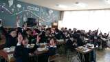 3月19日、5年生が、第三中学校で、東山小と葛木小の5年生と交流しました。まず交...