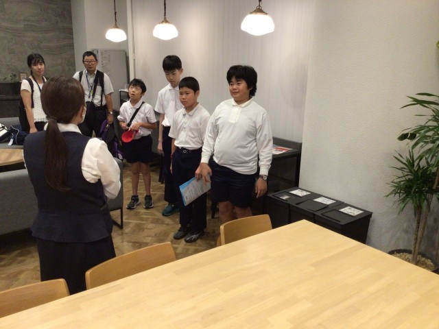 平和公園での活動を終え、路面電車で少し長めの移動をしました。そして予定通り宮島口のホテルに到着。入館式を行いました。疲れましたがほっと一安心です。一日がんばりましたね!