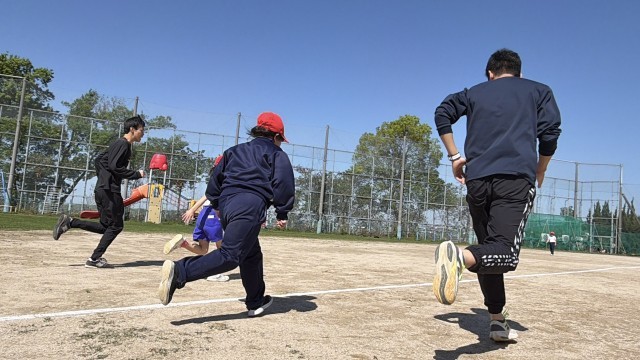 50m走では、子どもたちのやる気を引き出すように一緒に走って応援してくれた学生さんたち。永寿タイムの「けいどろ」でも、本気で追いかける大学生のみなさんから必死に逃げ回る子どもたちの姿があり、グラウンドは盛り上がりました。