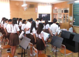 6年生は修学旅行で歌う折り鶴の歌の練習をしていました。