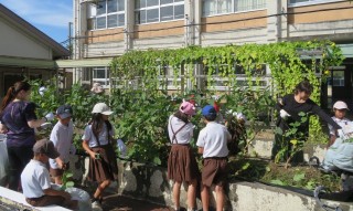 暑い夏を耐えてたくさんの馬場なすを実らせてきたなす畑ですが、3年生が最後の収穫をして、枝葉を切って片付けました。
