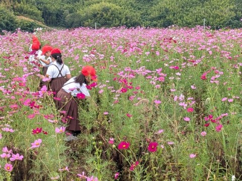 木積土地改良区に種をまいたコスモス畑がこんなにきれいな満開を迎えました。猛暑の中、地域のみなさまがお世話をしてくださったおかげです。