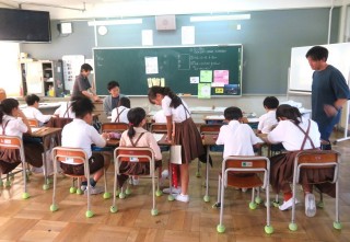 6年生は「はだしのゲン」のドラマを見終わって、感想を書いていました。