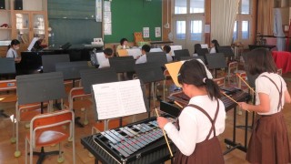 3年生は音楽室と教室に分かれて合奏のパート練習をしていました。