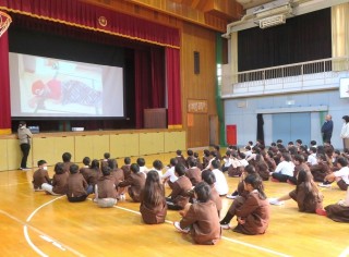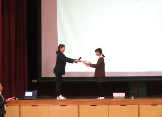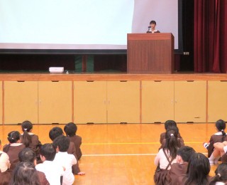 今朝の集会では、先日学校代表として少年の主張大会で発表した6年生の主張発表と表彰を行いました。