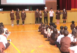 続けて、5年1組より、「あいさつをしよう」という呼びかけと取組の説明がありました。