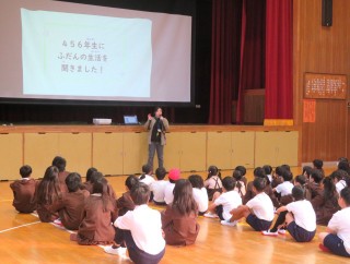 生活ハッピーウィークにちなんで、保健室の先生から睡眠についてのお話がありました。