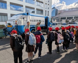 パッカー車を動かすところも見学しました。コスモスシアターでは、舞台から音響の設備まで見せてもらいました。
