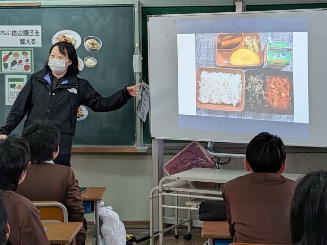 ゲストティーチャーにお越し頂いて、4年生と6年生で食育の授業を実施しました。給食の栄養バランスや丈夫な骨を作るカルシウムのお話をしてくださいました。また、6年生には中学給食の紹介もして頂きました。