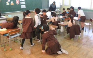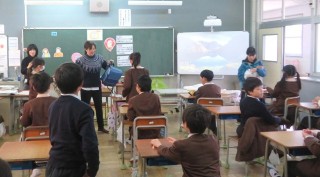 2年生と5年生が赤ちゃん人形を抱っこしたり、妊娠中と同じ重さのリュックをおなかに付けて動く体験をしたりしました。