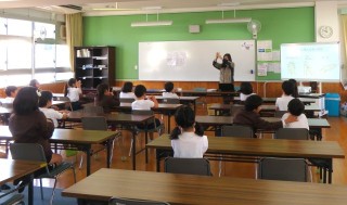 3年生は二測定の前に手洗いの仕方を復習していました。