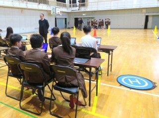 PTA会長が専門学校の先生方と一緒に来校して、ドローンの操縦方法を教えてくださいました。