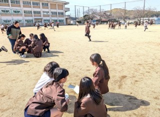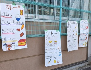 一人ずつ「野菜カード」をもらって、メニューに合う仲間をさがしながら逃げるおにごっこで、給食委員さんが考えて準備してくれました。