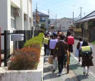 今年度最後の下校を見送りました。春休み中も元気に過ごしてください。