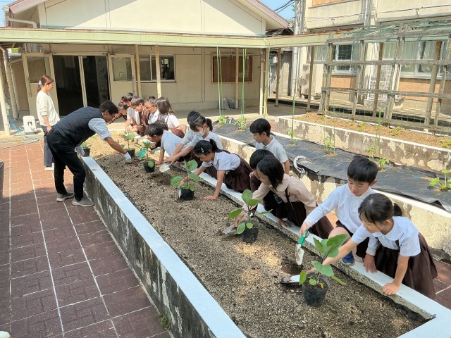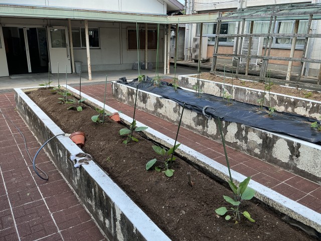 地域の方からいただいた『馬場なす』の苗をうえました。植えた後は、観察も忘れずに行いました。今年も元気に育つといいですね。たくさん収穫できること、楽しみにしています。