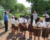 馬場なすの苗を寄付してくださった協力者の方を畑に招いて、3年生がお礼をしました。...