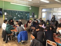 音楽室でリコーダーの練習をしていました。子どもたちは指づかいやタンギングなどについて先生に質問して、先生に見てもらっていました。
