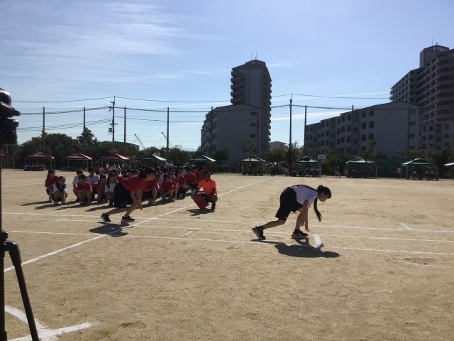 プログラム番号2番、7,8,9年生による100メートル徒競走の様子です。