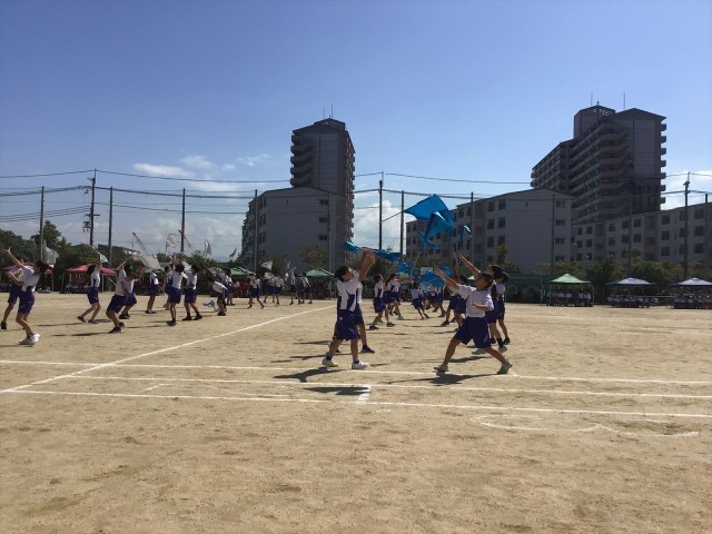 プログラム番号13番、5,6年生による団体演技『One for All ~ともに~』の様子です。