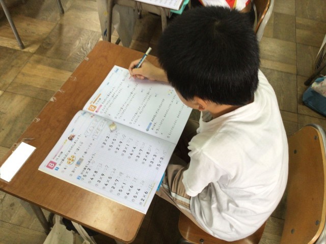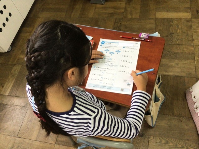 かけ算の文章問題作りをした後、かけ算の計算問題にチャレンジしていました。
