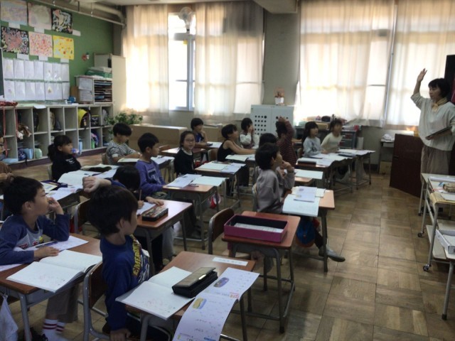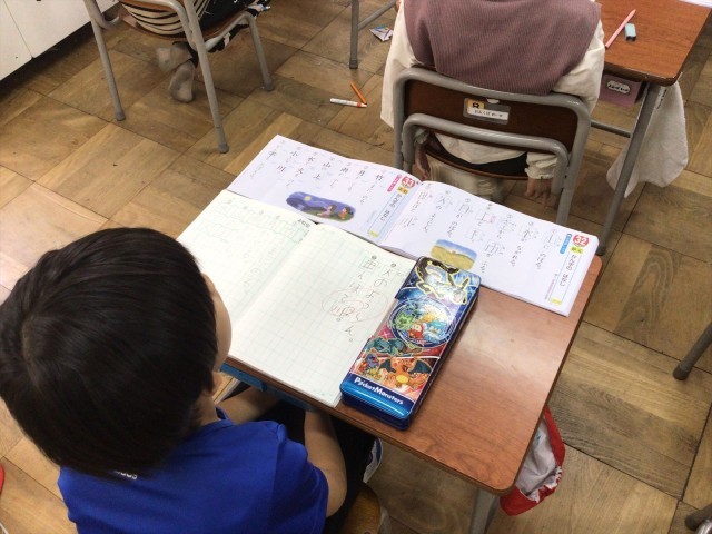 上の画像は漢字の学習をしている様子です。漢字の読み方を何度も確認して、書く練習をしていました。