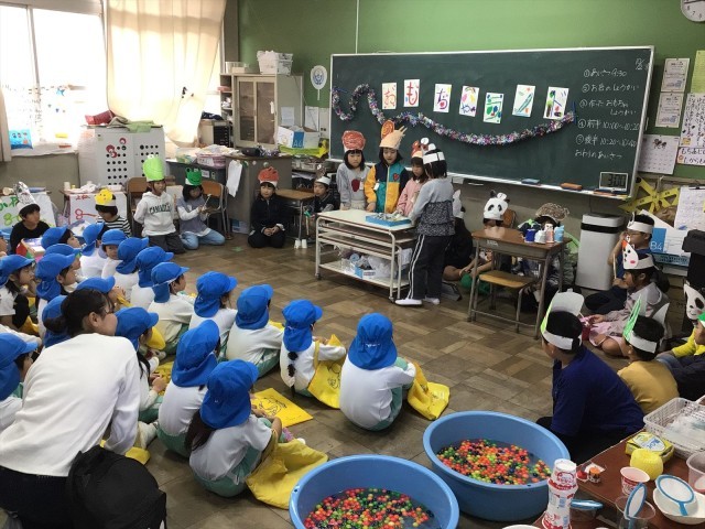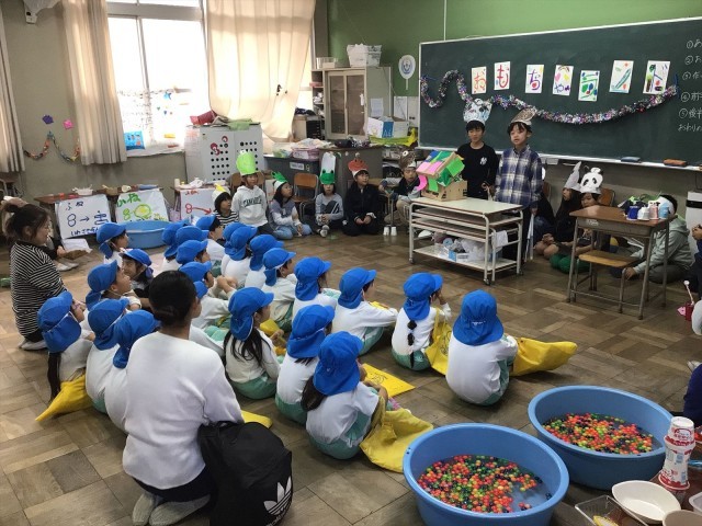 2年生の子どもたちは、生活科の時間におもちゃランドの企画と準備をしていました。そして、22日(水)には西幼稚園の園児を、今日はおおぞらこども園の園児をお招きして、おもちゃランドを開催しました。