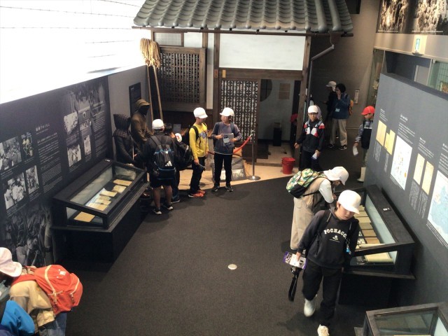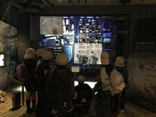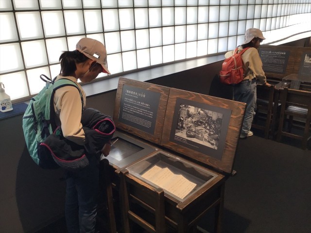 午後からはピースおおさかで様々な展示物を見ました。子どもたちは大阪だけで8回も空襲があったこと、それらの空襲で約15,000人もの人の命が失われたことに大変驚いていました。また、一つひとつの展示物をじっくり見る中で、当時の大阪の人たちの苦難がどれほどのものだったのかを考えていました。