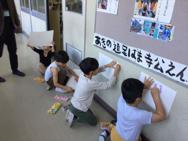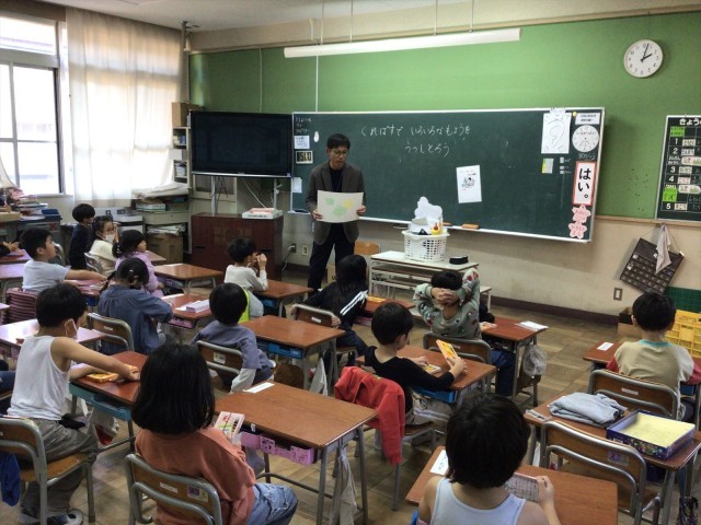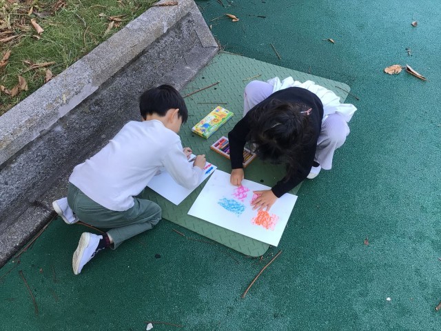 画用紙とクレヨンを使って、校内の様々な模様を写しとっていました。子どもたちはバスケット広場や運動場まで出かけて活動していました。