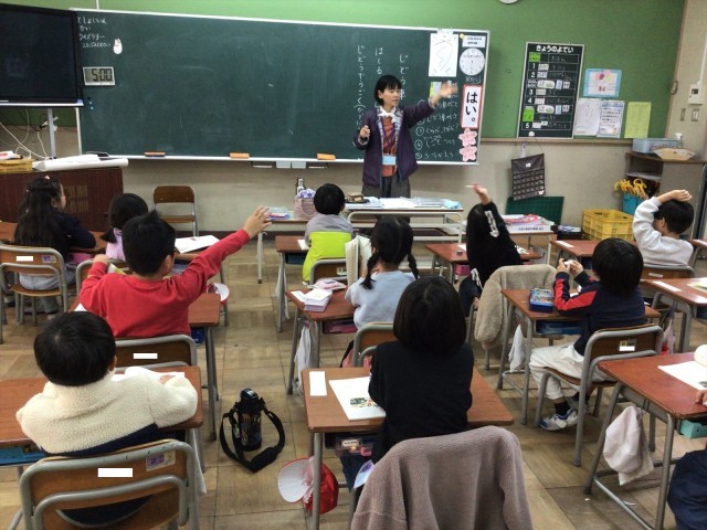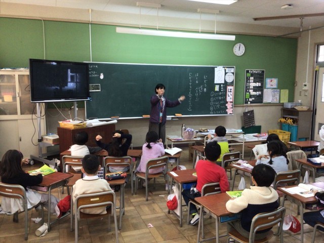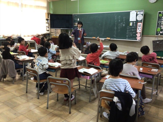 『じどう車くらべ』というお話を読んで、学習していました。子どもたちは自動車のハンドルやアクセルなど、自動車について知っていることを発表したり、自動車以外にどのような乗り物があるのかなどを交流したりしていました。