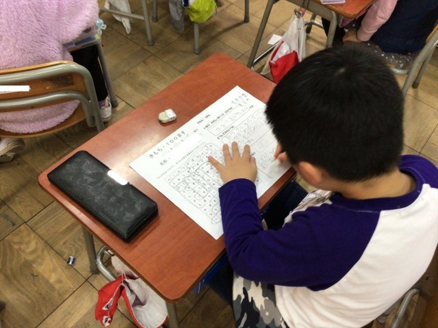 もちあじ学習の一環で、「きもち・100ます」にとりくんでいました。