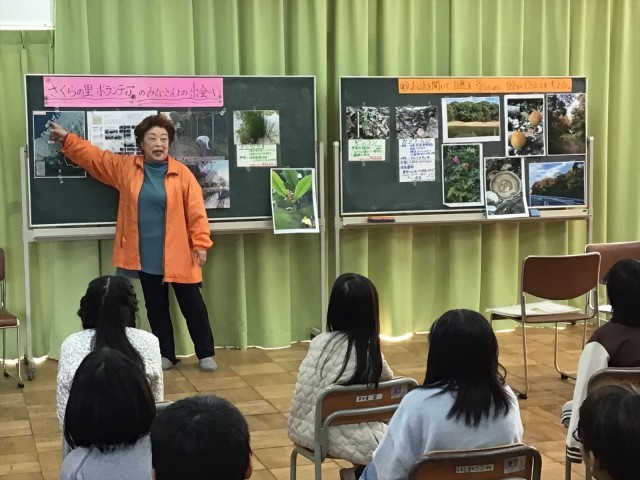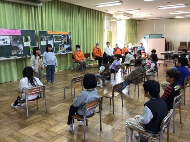 「さくらの里」の皆様からは、里山の自然を守る活動や、動植物を大切にする思いについてお話を聞かせていただきました。子どもたちは、活動の様子を写真で見たり、質問をしたりしながら、地域の自然を守ることの大切さを学びました。