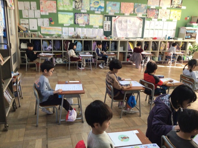 引き算のテストをしていました。テストが終了した児童は静かに見直しをしたり本を読んだりしていました。
