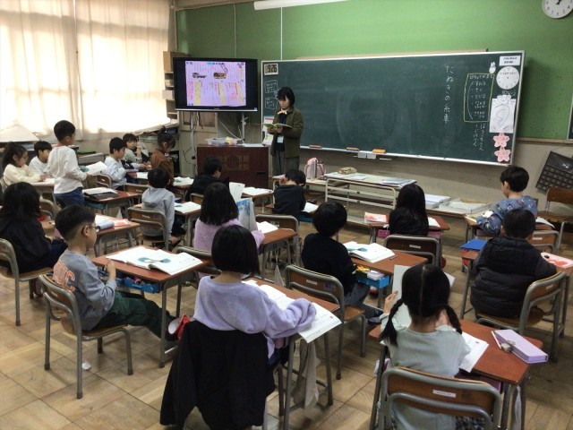 『たぬきの糸車』の学習をしていました。登場人物や出来事などを一つずつみんなで確認しました。