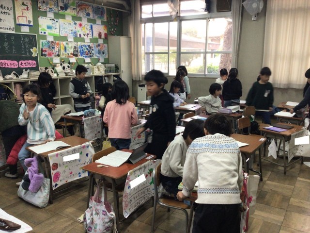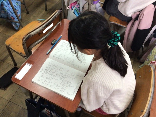 週末にがんばってとりくんだ自主学習のクラスコンクールをしていました。子どもたちは友だちの自主学習ノートを見せてもらい、「なるほど!」や「すごい!」と思った友だちのノートに星のシールを貼っていました。友だちの学習方法や工夫にふれることで、「こんなやり方があるんだ」「自分もやってみたい」という気づきが生まれ、自主学習の内容や質が自然と高まります。また、互いの良いところを認め合うことで、学習意欲やもちあじ、人間関係づくりにもつながります。