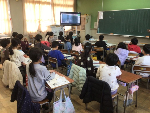 電気の通り道の学習をしていました。グループで知っていることを交流した後、大型モニターで動画を見ていました。
