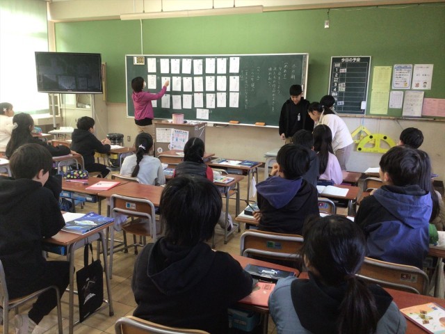 教室で句会を開いていました。子どもたちは、みんなが作った俳句を、名前を伏せた状態で鑑賞し、心に印象が残った俳句や表現がとてもいいと思った俳句など、良い俳句だと思った句に一票を投じました。その結果、得票の多かった俳句は、