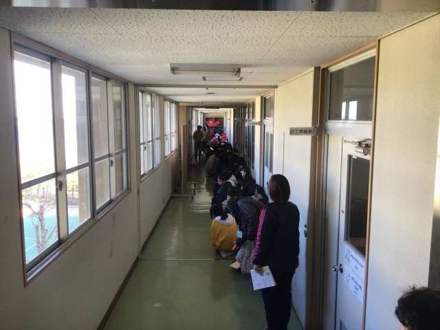 続いて、校長先生の話を聞いた後、津波を想定した垂直避難を行いました。全員が速やかに3階まで移動し、再度、避難状況の確認を行って訓練を終えました。
