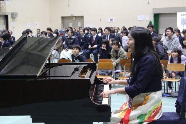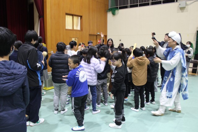 『 【子どもたちのために】 コミュニティ・スクールとしての未来をともに考える時間にしたい 』学校運営協議会メンバー共通の熱い想いです。この想いを共有するため、また、本校教育の柱である探究的な学びを中心として自分の生き方を考える「二色学園型STEAMS教育」の創造を目的に、本フォーラムを初めて開催しました。結果は大成功。児童生徒・保護者・地域の方々・教職員をあわせると、200人以上の参加がありました。講師の中島さち子さんには、即興演奏やリアルタイムアンケートを用いた双方向ワークなど、地域と未来を共創する“ライブ型の学びの場”をデザインしていただきました。また、児童・生徒による発表(食品ロスを減らすためのアプリ開発、海の環境保全をめざしたアマモ苗育成、地球にやさしい「わたしたちにできること」)や、校内の田んぼ・畑で育てたお米・さつまいもで作った「おにぎり・スイートポテト・大根」販売も行いました。とにかく「もりだくさん」でした。来年度も開催できるといいですね。