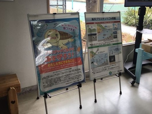 貝塚市役所の方が海洋保全に関するパネルを1回の大廊下に設置してくださっています。大廊下を歩いている子どもたちが次々と見ていました。前期課程でも後期課程でも環境問題について学びます。このパネルをしっかり見て、海洋プラスチックごみ問題について考えたり、海の環境を守るためにわたしたちができることを考えたりしてほしいと思います。